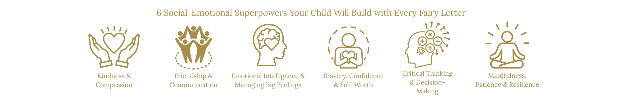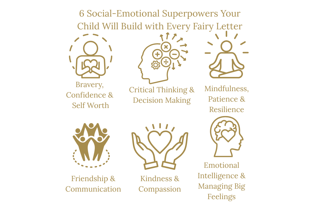 From your child’s very own fairy pen pal, each magical letter teaches kindness, emotional resilience, and imagination-building through fun, screen-free storytelling.