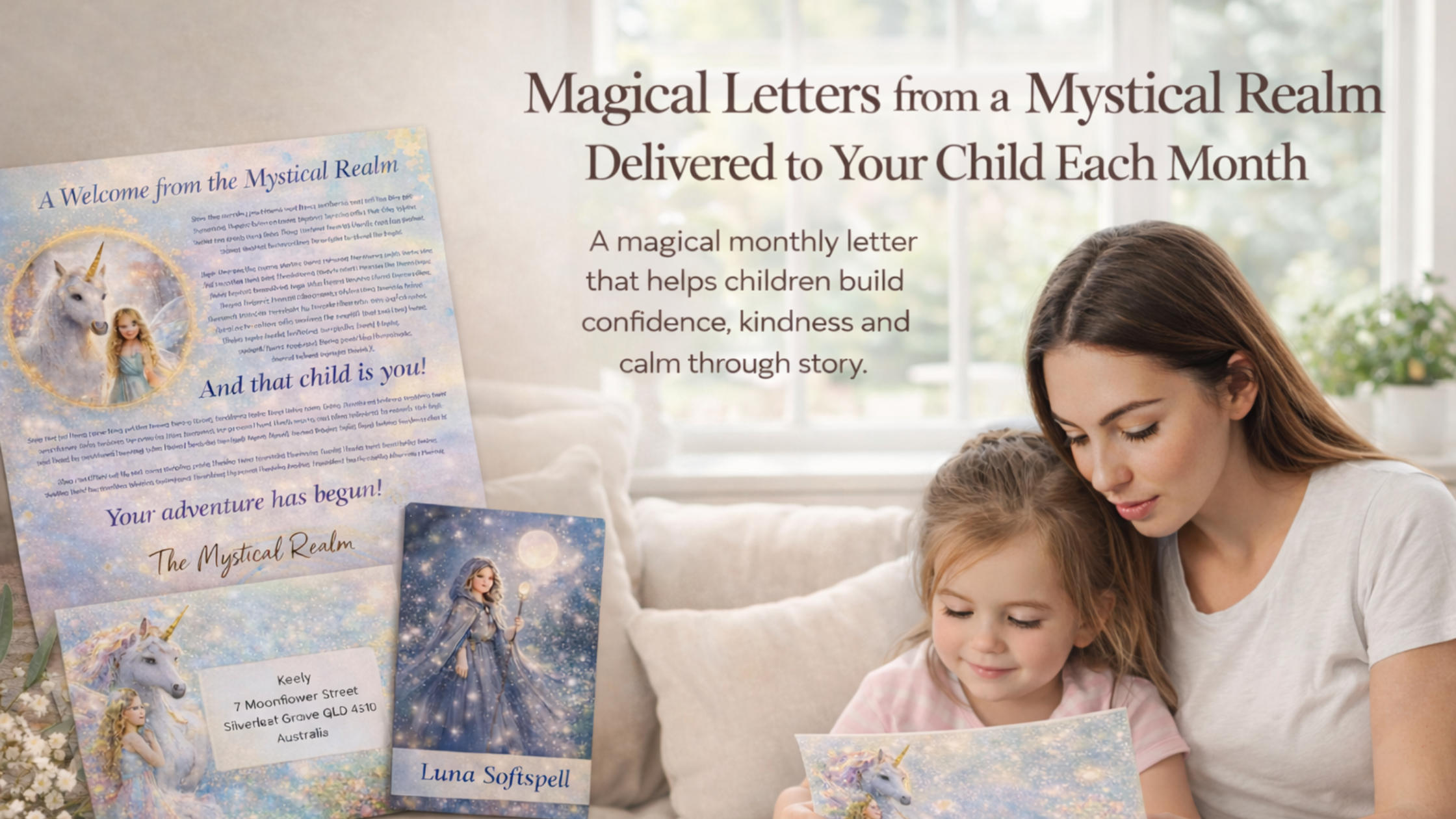 A magical letter delivered to your child each month, sent from a friend in the Mystical Realm.